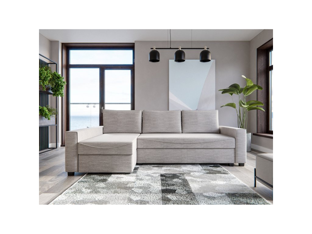 Rohová rozkládací sedací souprava BEN. Pevná konstrukce ze dřeva a OSB desky. Potah z kvalitní tkaniny. Moderní design vhodný do všech současných interiérů. - sedací souprava má 2 úložné prostory pod sedáky - snadné rozkládání na lůžkovou podobu pomocí mechanismu Delfín Výplň: Kvalitní PUR pěna T28. Velmi pohodlná díky vlnité pružině. Potah: Tkanina Wind je vyrobená ze 100% polyesteru. Tato potahová látka se řadí mezi sametové. Její vyjímečnou vlastností je voděodolnost. Na jejím povrchu se tvoří různé odstíny, což vytváří zajímavý vizuální efekt. Údržba: Doporučujeme čistit pouze jemnou houbičkou. Nebělte, mohlo by dojít k poškození vláken.Doplňkové parametry