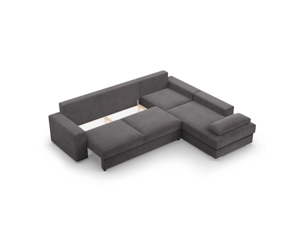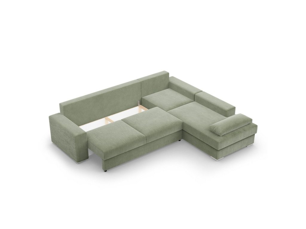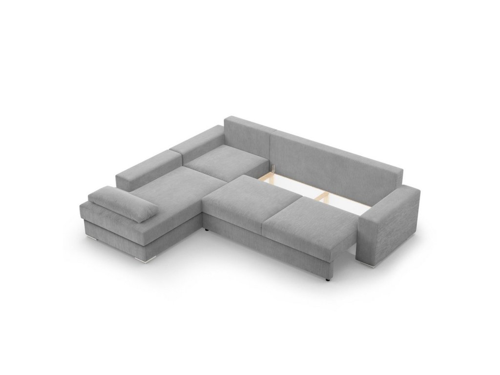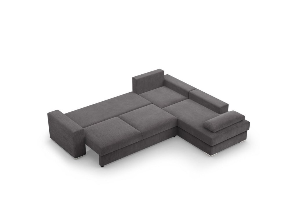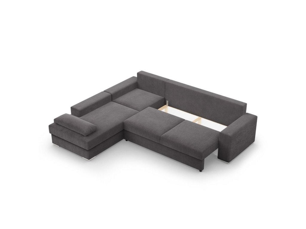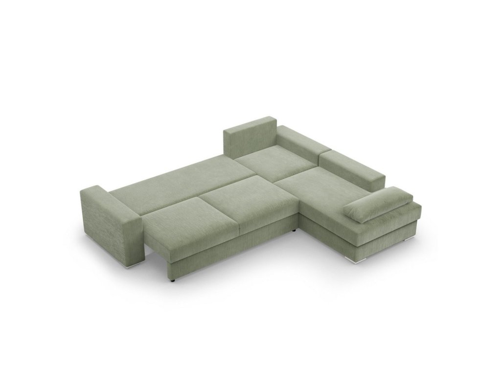 Rohová rozkládací sedací souprava FESTINA. Pevná konstrukce ze dřeva a OSB desky. Potah z kvalitní látky POSO v mnoha moderních barevných odstínech. Snadné rozkládání na lůžkovou podobu. Moderní design vhodný do všech současných interiérů. Výplň: Kvalitní PUR pěna a odpružení vlnovými pružinami . Potah: Tkanina Poso je příjemná na dotek. Řadíme ji mezi velurovou tkaninu. Jedná se o tkaninu podobnou plyši s krátkým vlasem, která se vyznačuje sametově jemným povrchem. Svým typickým vzhledem připomíná manšestr. Vyznačuje se dostatečnou pevností a odolností. Údržba: Doporučujeme čistit pouze jemnou houbičkou. Nebělte, mohlo by dojít k poškození vláken.Doplňkové parametry
