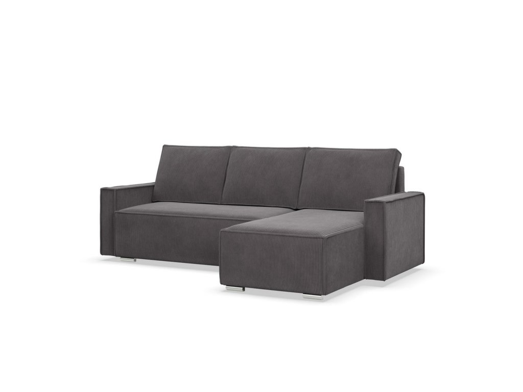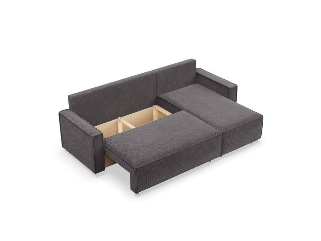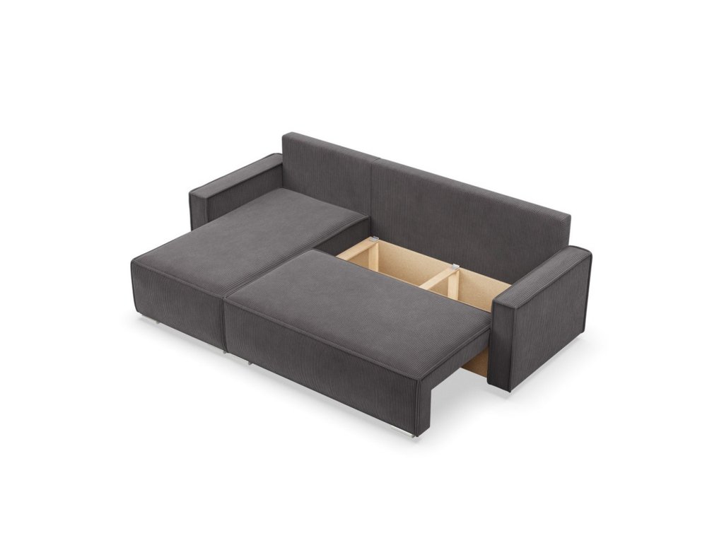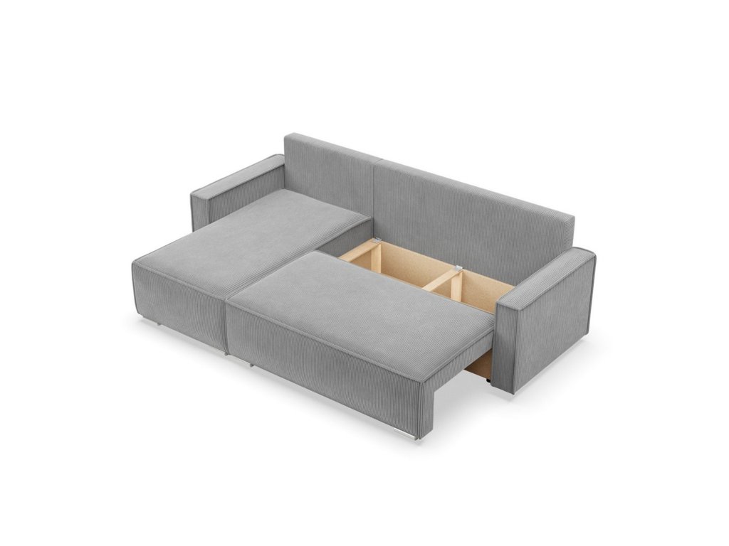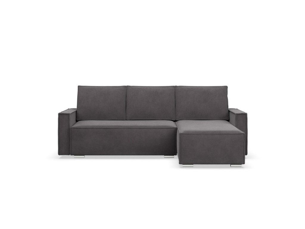 Rohová rozkládací sedací souprava LUCCA. Sedačka Lucca poskytne místo pro každodenní odpočinek a umí se proměnit v pohodlnou plochu na občasné přespání. Naše rohová sedací souprava je kompletně potažena látkou včetně zadní části. Díky tomu získáte samostatně stojící kus nábytku. Výplň: Pružiny Bonell. Pružiny mají specifický tvar a síla pružin odpovídá jejich zatížení. Jednotlivé pružiny jsou vzájemně propojené přídavnými spirálami, díky tomu drží stálý tvar a neuvolňují se. Potah: Látku Poso řadíme mezi velurovou tkaninu. Jedná se o tkaninu podobnou plyši s krátkým vlasem, která se vyznačuje sametově jemným povrchem. Látka Poso je vyrobená ze 100% polyesteru. Svým typickým vzhledem připomíná manšestr. Vyznačuje se dostatečnou pevností a odolností. Pro údržbu a čistění používejte navlhčený hadřík a speciální prostředky pro čalouněný nábytek či mýdlovou vodu. Údržba: Vyhněte se použití chemikálií.Doplňkové parametry