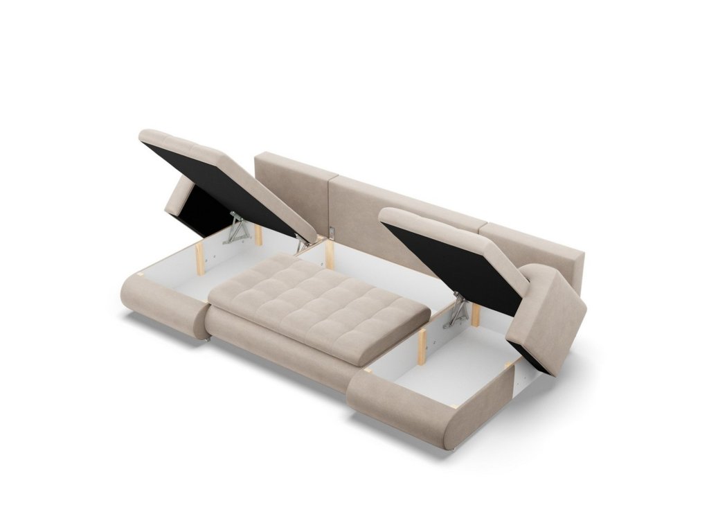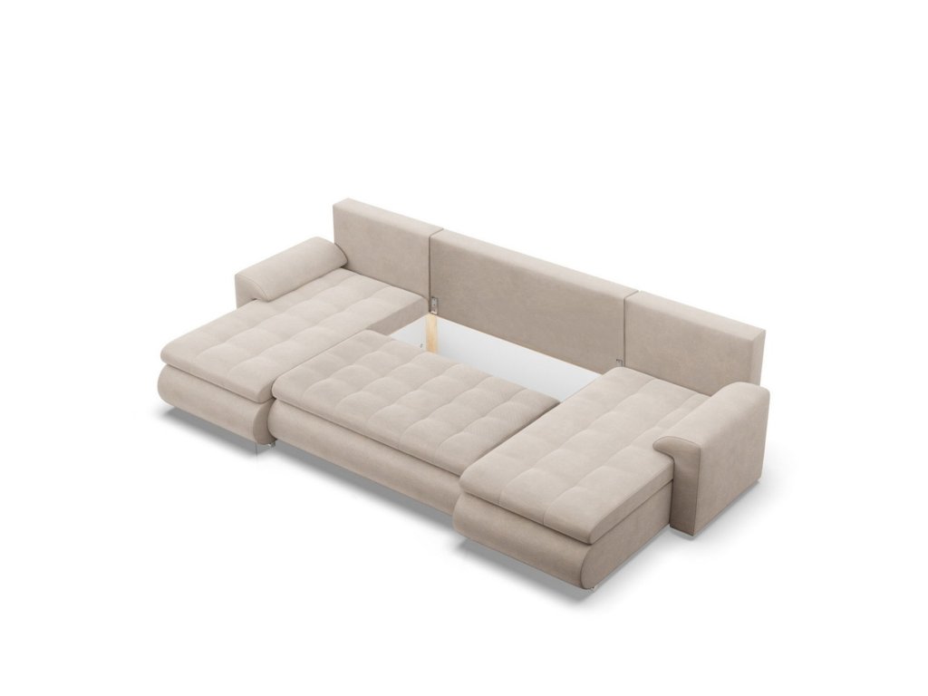Rohová rozkládací sedací souprava U TOKIO III Pro. Pevná konstrukce ze dřeva a OSB desky. Potah z kvalitní tkaniny v mnoha moderních barevných odstínech. Sedací část je prošívaná. Snadné rozkládání sedací soupravy na lůžkovou podobu. Moderní design vhodný do všech současných interiérů. Výplň: Kvalitní PUR pěna s vlnitou pružinou. Je měkká, ale zároveň dostatečně pružná. Pěnový polyuretan je vlastně molitan, který se při výrobě kombinuje s jinými druhy pěn. Potah: Textilie Kronos je vyrobená ze 100% polyesteru a řadí se mezi plyšové tkaniny. Kompaktní tkaná textilie je velice měkká a příjemná na dotek. Textilie Paros je vyrobena ze 100% polyesteru, je velice jemná a hebká na dotek. Díky svým vlastnostem se řadí mezi sametové látky. Jemná struktura látky je dostatečně pevná. Nabízíme v barvě - béžová. Údržba: Vyhněte se použití chemikálií.Doplňkové parametry