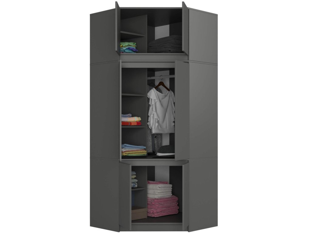 Rohová šatní skříň s nástavbou S100 - šedá. Šatní skříň S100 se skvěle hodí k uložení oblečení. Díky univerzálnímu vzhledu se hodí do ložnice, dětského pokoje, ale i předsíně. - snadná organizace oblečení díky různým možnostem uložení - tyč k zavěšení oblečení - použití kvalitních materiálů - zajímavé provedení - snadná montáž Údržba: Povrch nábytku utřete do čista měkkým hadříkem. Vyhněte se použití chemikálií.Doplňkové parametry