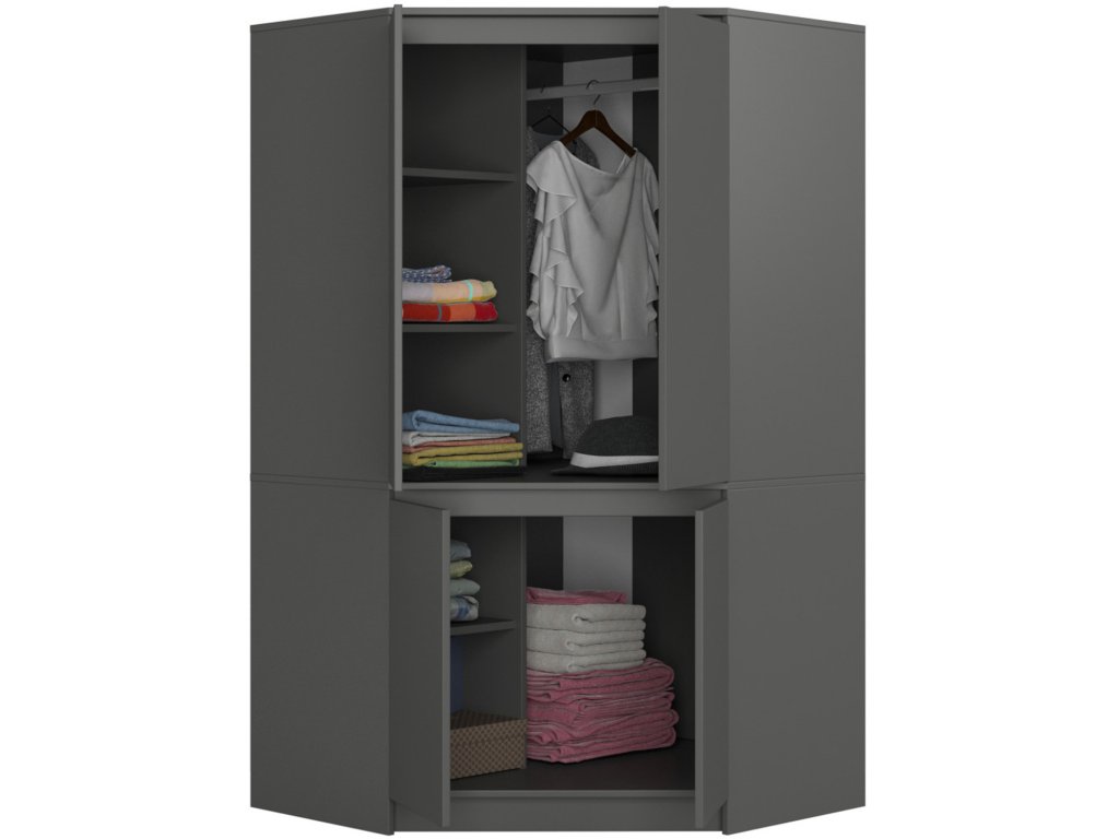 Rohová šatní skříň S100 4D CLP - šedá. Šatní skříň S100 4D CLP se skvěle hodí k uložení oblečení. Díky univerzálnímu vzhledu se hodí do ložnice, dětského pokoje, ale i předsíně. - snadná organizace oblečení díky různým možnostem uložení - tyč k zavěšení oblečení - použití kvalitních materiálů - zajímavé provedení - snadná montáž Údržba: Povrch nábytku utřete do čista měkkým hadříkem. Vyhněte se použití chemikálií.Doplňkové parametry