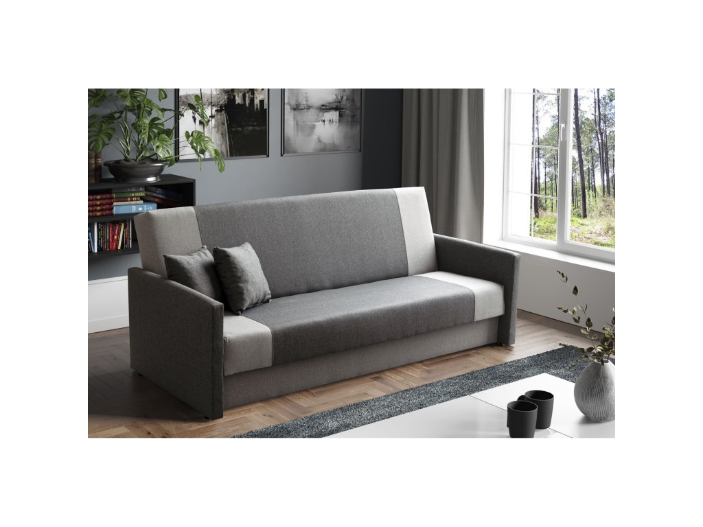 Rozkládací pohovka 126 Amelia. Pevná konstrukce ze dřeva a OSB desky. Potah z kvalitní látky Riviera v mnoha moderních barevných odstínech. Snadné rozkládání pohovky na lůžkovou podobu. Moderní design vhodný do všech současných interiérů. Výplň - kvalitní PUR pěna T28. Velmi pohodlná díky vlnité pružině. Potah - tkanina Riviera je vyrobena ze 100% polyesteru, na dotek je příjemně měkká. Její struktura je jemná a téměř neviditelná, svým vzhledem se podobá sametu. Péče o textilii je velmi snadná. Postačí vám pouze navlhčený hadřík, voda nebo speciální jemný čistící prostředek na čalouněný nábytek. Je velmi pevná a odolná. Fotografie je pouze ilustrační.Doplňkové parametry