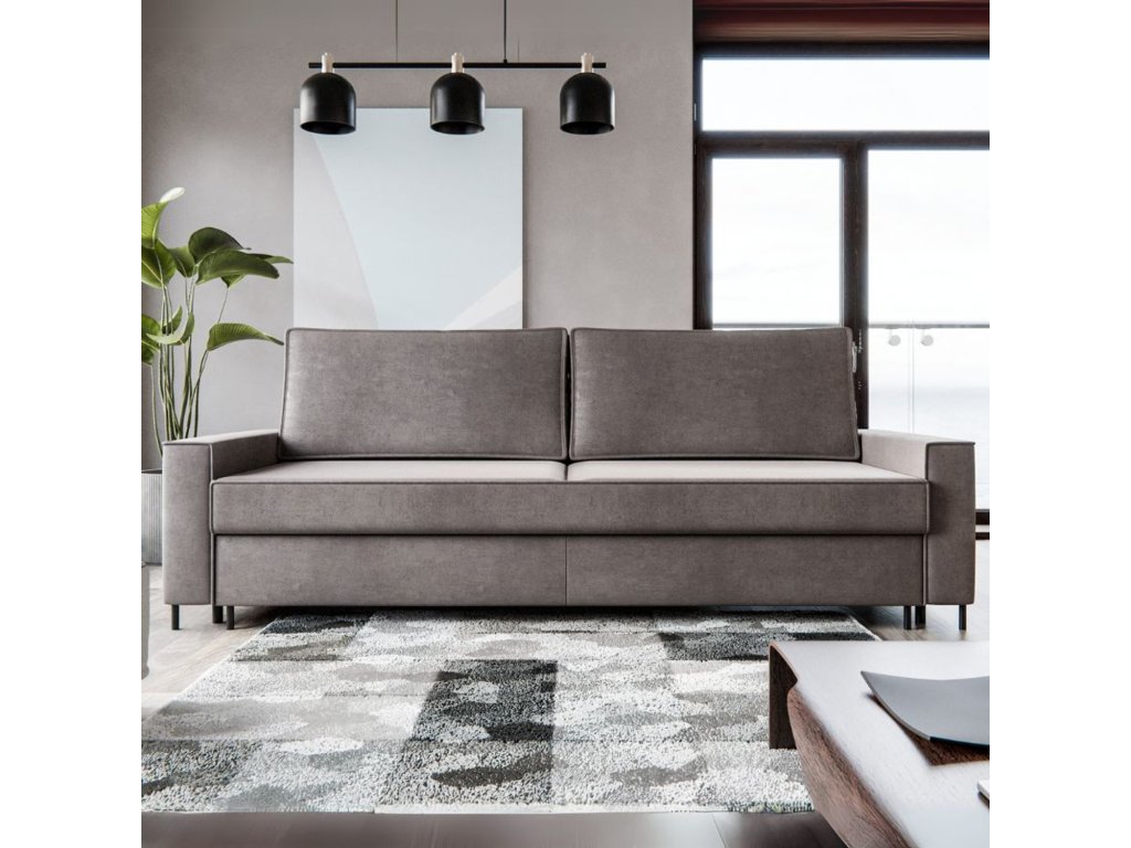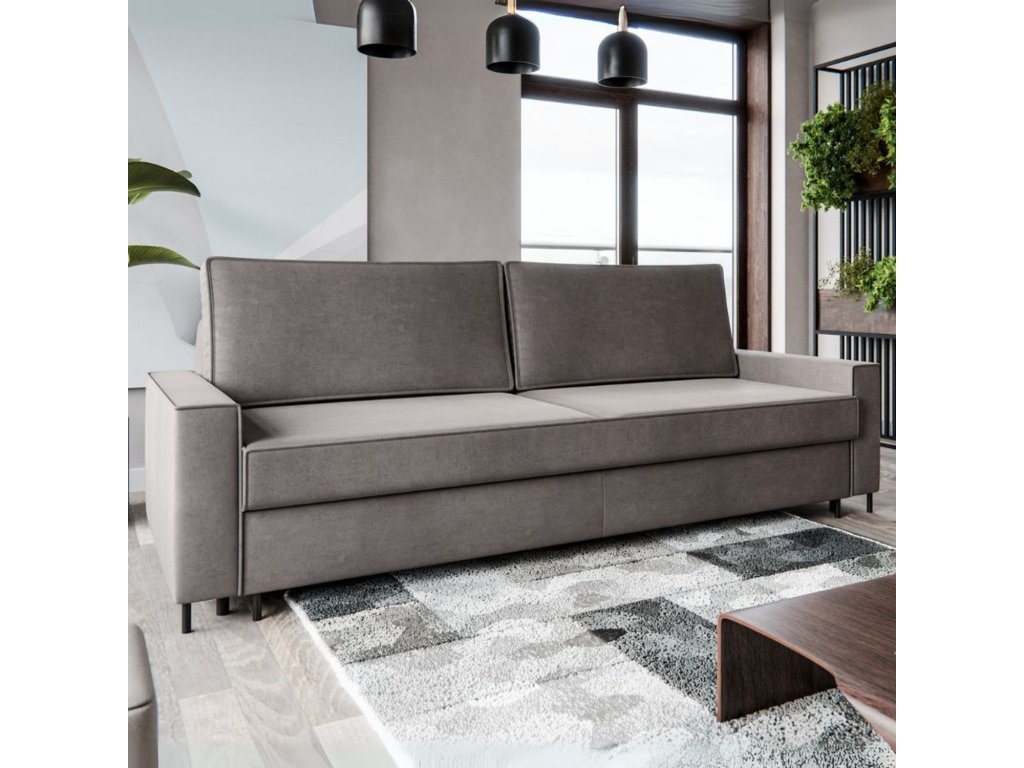 Rozkládací pohovka BEN. Pevná konstrukce ze dřeva a OSB desky. Potah z kvalitní tkaniny. Moderní design vhodný do všech současných interiérů. - sedací souprava má 1 úložný prostor pod sedáky - snadné rozkládání na lůžkovou podobu pomocí mechanismu Delfín Výplň: Kvalitní PUR pěna T28. Velmi pohodlná díky vlnité pružině. Potah: Tkanina Amon je vyrobená ze 100% polyesteru. Je to extrémně měkká a sametová látka. Předností látky AMON je její jemný lesk, který dodává každému interiéru noblesu a eleganci. Tkanina Amon je navíc pokryta inovativní úpravou WaterStop, která ztěžuje absorpci vody. Díky tomu je látka extrémně praktická na použití, snadno se čistí a je odolná vůči skvrnám. Údržba: Doporučujeme čistit pouze jemnou houbičkou. Nebělte, mohlo by dojít k poškození vláken.Doplňkové parametry
