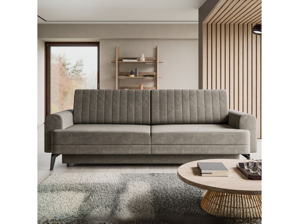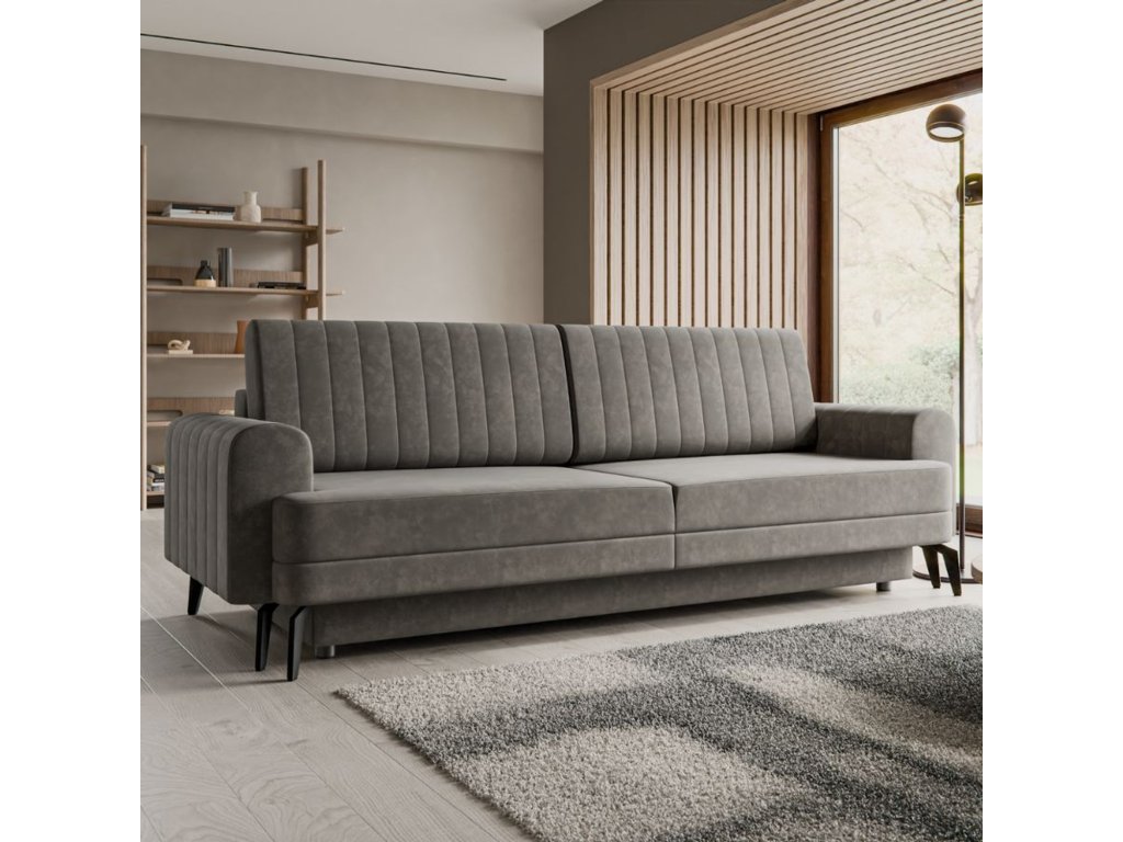 Rozkládací pohovka RIDA. Pevná konstrukce ze dřeva a OSB desky. Potah z kvalitní tkaniny. Moderní design vhodný do všech současných interiérů. - sedací souprava má 1 úložný prostor pod sedáky - snadné rozkládání na lůžkovou podobu pomocí mechanismu Delfín Výplň: Kvalitní PUR pěna T28. Velmi pohodlná díky vlnité pružině. Potah: Tkanina Zetta je vyrobená ze 100% polyesteru. Svoji jemnou strukturou připomíná samet. Řadí se do skupiny velurových tkanin. Tedy těch, které se vyznačují sametovou hebkostí a jemně chlupatým povrchem. I přes svoji jemnost vyniká látka vysokou odolností proti oděru. Údržba: Doporučujeme čistit pouze jemnou houbičkou. Nebělte, mohlo by dojít k poškození vláken.Doplňkové parametry