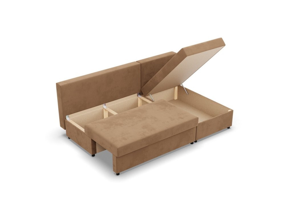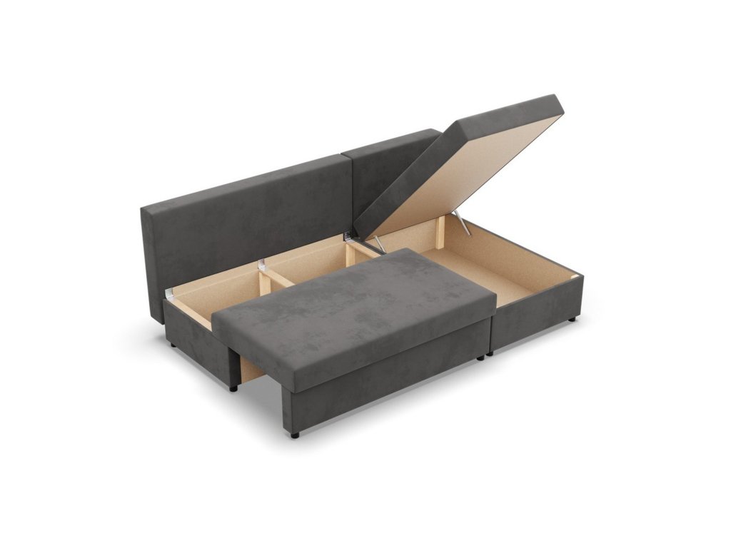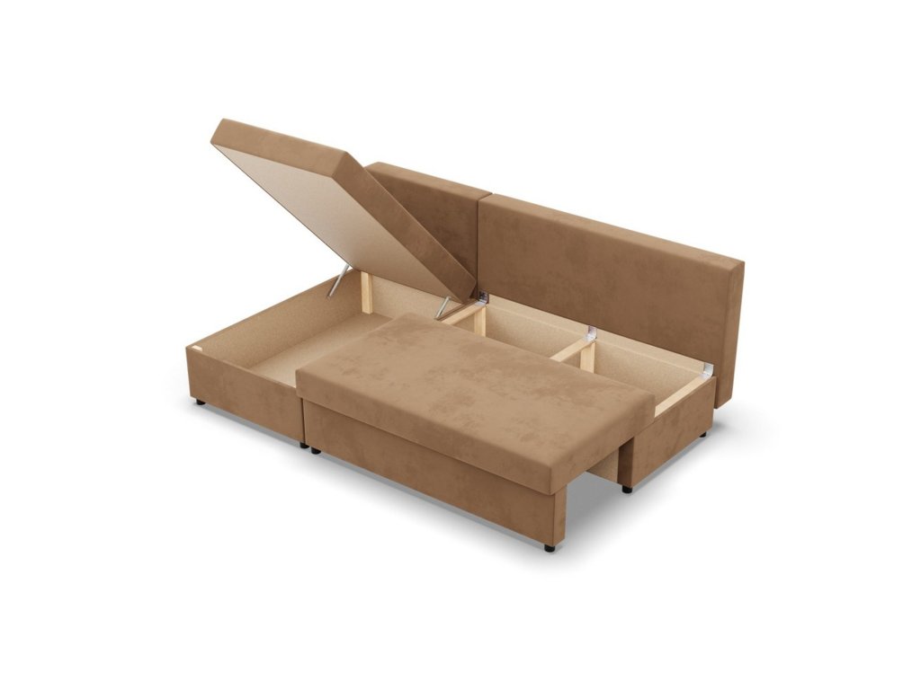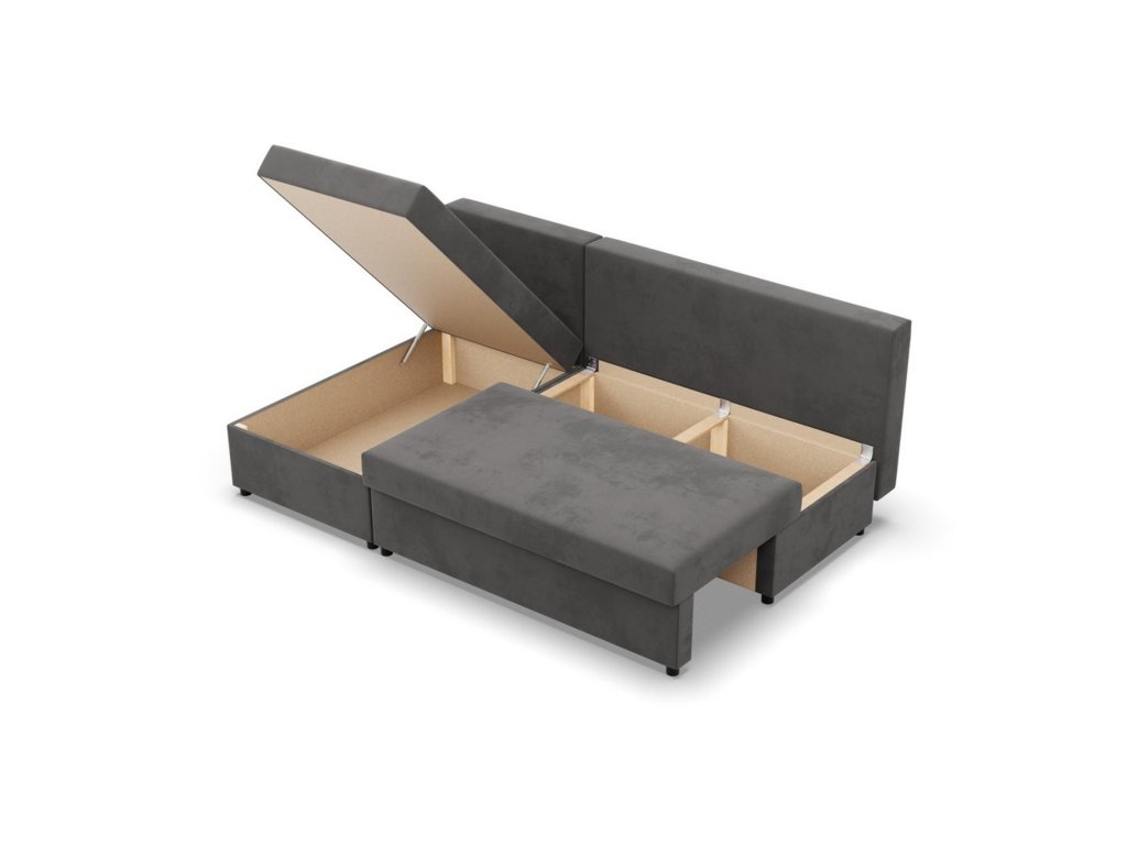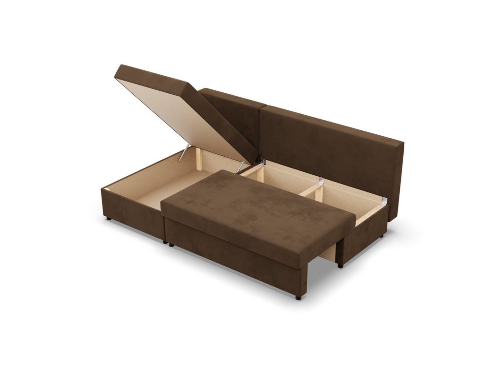 Rozkládací rohová sedací souprava Deli model 2. Pevná konstrukce ze dřeva a OSB desky. Potah z kvalitní látky Micro v mnoha moderních barevných odstínech. Snadné rozkládání pohovky na lůžkovou podobu. Moderní design vhodný do všech současných interiérů. Sedací souprava má úložný prostor pod sedákem. Výplň: Kvalitní PUR pěna. Potah: Tkanina Micro je vyrobena ze syntetických materiálů, které dodávají povrchu měkkost a jemnost. Řadí se mezi velurové látky. Je pevná a odolná. Údržba: Doporučujeme čistit pouze jemnou houbičkou. Nebělte, mohlo by dojít k poškození vláken.Doplňkové parametry