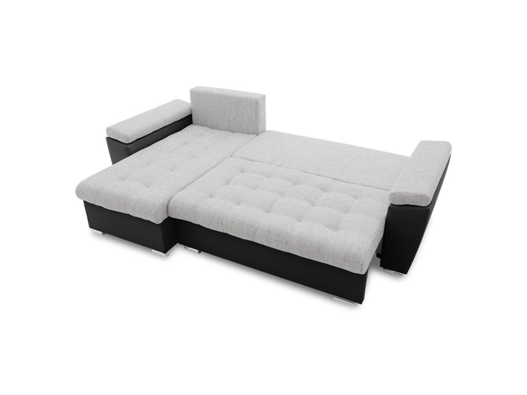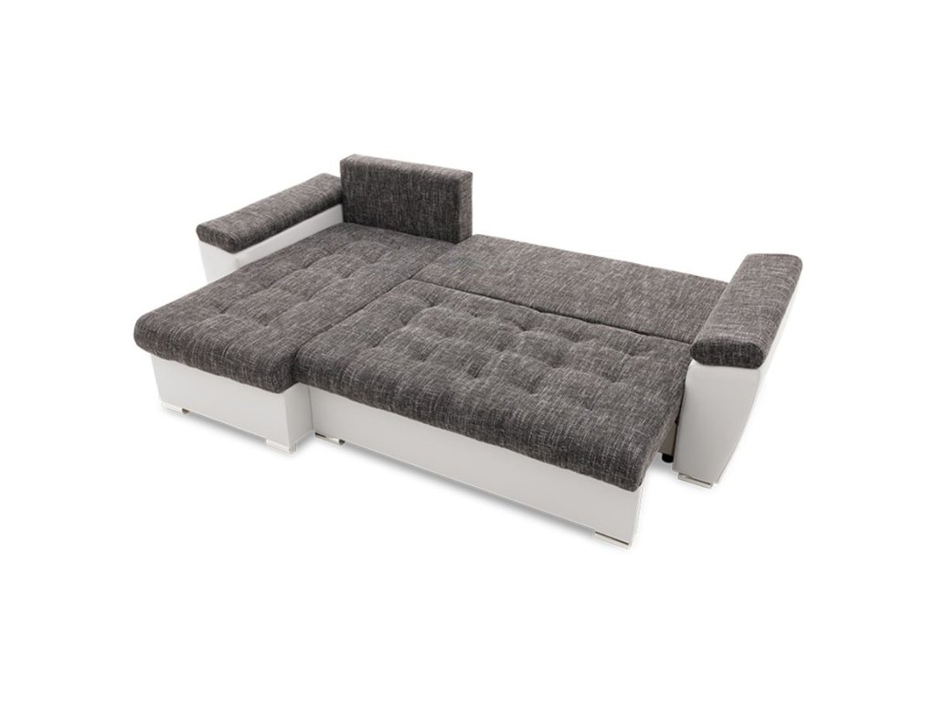 Rozkládací rohová sedací souprava VEGAS 250/160. Pevná konstrukce ze dřeva a OSB desky. Potah z kvalitní eko-kůže a tkaniny v mnoha moderních barevných odstínech. Snadné rozkládání pohovky na lůžkovou podobu. Moderní design vhodný do všech současných interiérů. Prošívaný podsedák. Výplň - kvalitní PUR pěna. Velmi pohodlná díky odpružení typu Bonell. Potah: Tkanina Lawa je látka připomínající pytlovinu a je často využívaná v čalounictví. Melírovaná potahová látka vzniká propletením hrubých a tenkých nití v různých odstínech. Vlákna jsou tedy výrazná, na dotek měkká a příjemná. Péče o pletenou tkaninu je opravdu snadná. Doporučujeme čistit suchou pěnou nebo speciálním vysavačem pro čistění čalounění. Drhnutí mokrým hadříkem se vyhněte, mohlo by dojít ke žmolkování a znehodnocení. Tkanina Real je umělá kůže (často označovaná jako koženka nebo syntetická kůže). Je to uměle vyrobený materiál, který napodobuje vzhled a vlastnosti pravé kůže, ale neobsahuje žádné živočišné složky. Údržba: Doporučujeme čistit pouze jemnou houbičkou. Nebělte, mohlo by dojít k poškození vláken.Doplňkové parametry