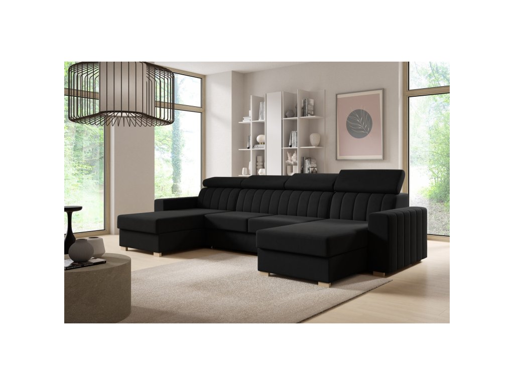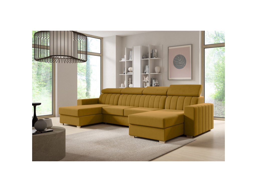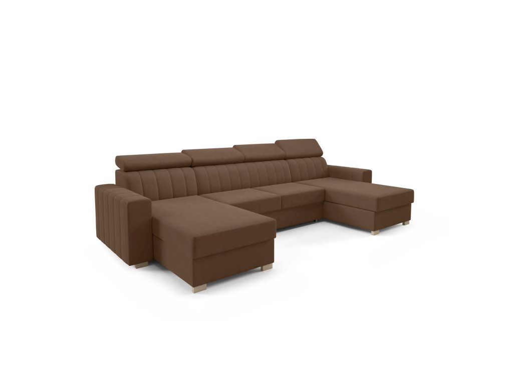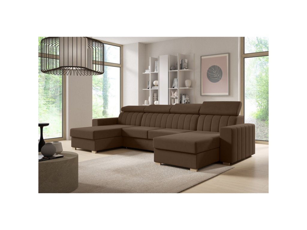 Rozkládací sedací souprava LAOS U. Pevná konstrukce ze dřeva a OSB desky. Snadné rozkládání sedací soupravy na lůžkovou podobu. Moderní design vhodný do všech současných interiérů. Nastavitelné opěrky hlavy. Výplň: Kvalitní PUR pěna. Velmi pohodlná díky vlnité pružině. Potah: Tkanina Kronos je vyrobená ze 100% polyesteru a řadí se mezi plyšové tkaniny. Kompaktní tkaná textilie je velice měkká a příjemná na dotek. Nabízíme v barvě: žlutá, hnědá, černá, modrá, růžová, modrá I, zelená. Tkanina Monolith je ošetřena speciální ochrannou vrstvou, která vytváří hydrofobní povlak. Ten ji chrání před okamžitou absorpcí tekutiny, odpuzuje vodu a vytváří drobné kapičky na povrchu. Látka vyrobená ze 100% polyesteru vyniká svoji pevností a jemností na dotek. Někdy je též přirovnávaný k plyši, je odolný a péče o něj je opravdu snadná. Nabízíme v barvě: béžová, hnědá, zelená, šedá, černá. Údržba: Doporučujeme čistit pouze jemnou houbičkou. Nebělte, mohlo by dojít k poškození vláken.Doplňkové parametry