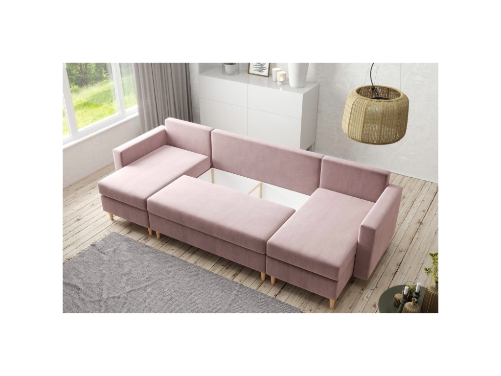 Rozkládací sedací souprava LIVIO. Je vyrobena ve tvaru písmene U. Nábytek má velké pohodlné polštáře. Prvky z masivního dřeva použité v rámu zvyšují odolnost a tuhost celé konstrukce a to se následně promítne do mnoha let bezproblémového používání. Rozkládací pohovka je samostatně stojící kus nábytku, který můžete umístit i do středu místnosti. Úložný prostor na lůžkoviny. Výplň - kvalitní PUR pěna. Velmi pohodlná díky odpružení typu Bonell. Potah -Tkanina Kronos je vyrobena ze 100% polyesteru a řadí se mezi plyšové tkaniny. Výhodou tkaniny je, že nežmolkovatí. Vyznačuje se sametovou jemností. Údržba: Doporučujeme čistit pouze jemnou houbičkou. Nebělte, mohlo by dojít k poškození vláken.Doplňkové parametry