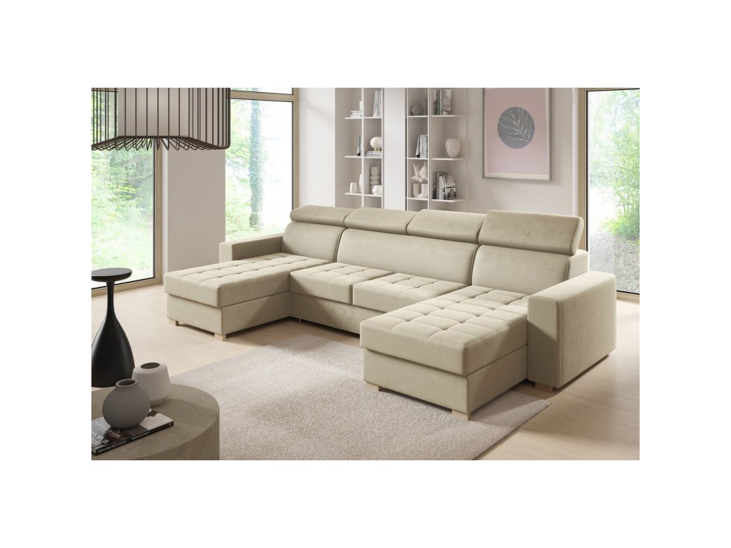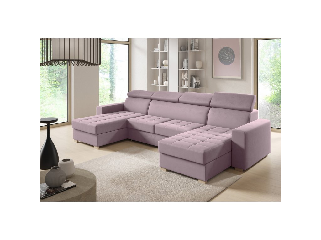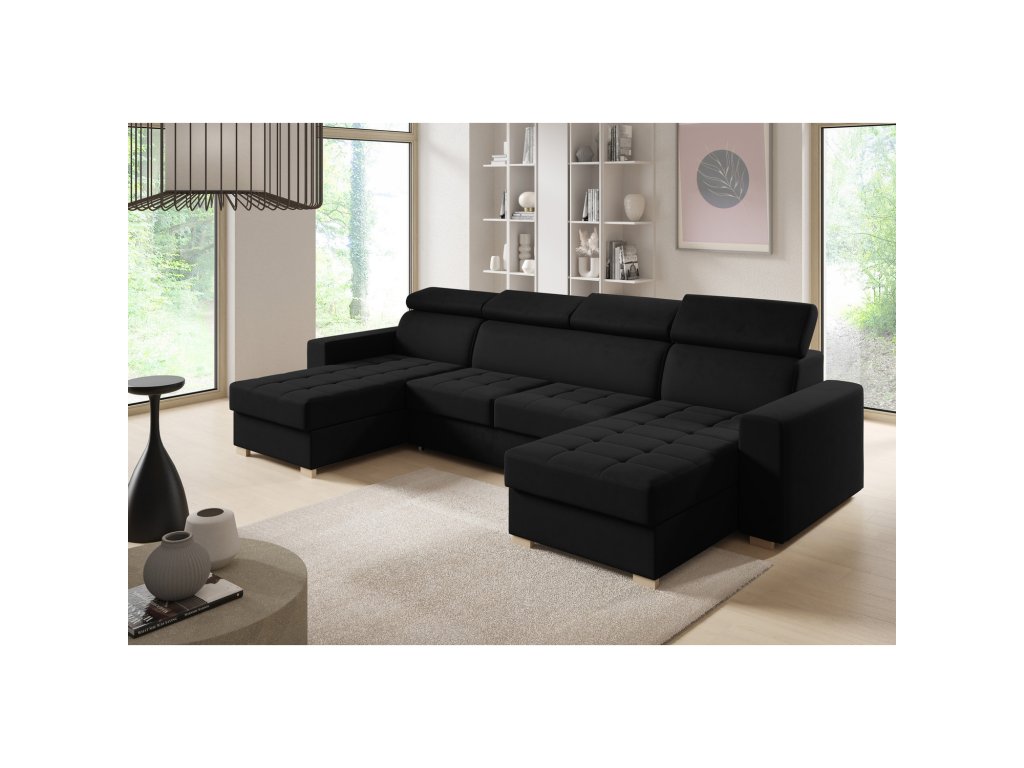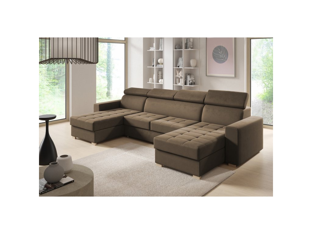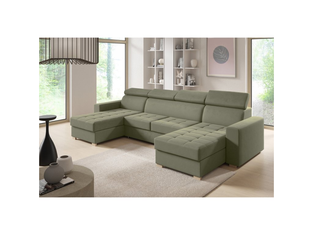 Rozkládací sedací souprava MONSUN U. Pevná konstrukce ze dřeva a OSB desky. Snadné rozkládání sedací soupravy na lůžkovou podobu. Moderní design vhodný do všech současných interiérů. Nastavitelné opěrky hlavy. Výplň: Kvalitní PUR pěna. Velmi pohodlná díky vlnité pružině. Potah: Tkanina Kronos je vyrobená ze 100% polyesteru a řadí se mezi plyšové tkaniny. Kompaktní tkaná textilie je velice měkká a příjemná na dotek. Nabízíme v barvě: černá, růžová, zelená. Tkanina Monolith je ošetřena speciální ochrannou vrstvou, která vytváří hydrofobní povlak. Ten ji chrání před okamžitou absorpcí tekutiny, odpuzuje vodu a vytváří drobné kapičky na povrchu. Látka vyrobená ze 100% polyesteru vyniká svoji pevností a jemností na dotek. Někdy je též přirovnávaný k plyši, je odolný a péče o něj je opravdu snadná. Nabízíme v barvě: béžová, hnědá, zelená I, modrá, šedá, černá I. Údržba: Doporučujeme čistit pouze jemnou houbičkou. Nebělte, mohlo by dojít k poškození vláken.Doplňkové parametry
