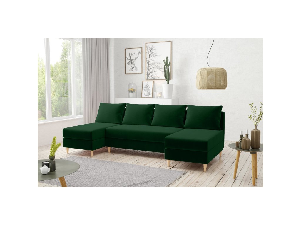 Rozkládací rohová sedací souprava Vero je vyrobena ve tvaru písmene U. Moderní design vhodný do všech současných interiérů. Sedačka má velké pohodlné polštáře. Prvky z masivního dřeva použité v rámu zvyšují odolnost a tuhost celé konstrukce a to se následně promítne do mnoha let bezproblémového používání. Údržba: Doporučujeme čistit pouze jemnou houbičkou. Nebělte, mohlo by dojít k poškození vláken.Doplňkové parametry