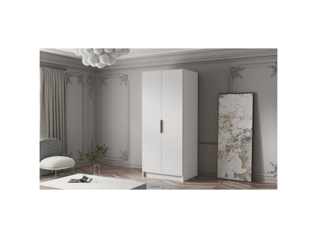 Šatní skříň BODRUM 100 I - bílá/zlaté úchytky. Šatní skříň kombinuje klasickou jednoduchost a moderní design. Je ideální jako šatní skříň do předsíně nebo místo pro uložení oblečení v ložnici nebo jiných drobností každodenní potřeby. Šatní skříně je rozdělena na dvě stejné části. Na jedné straně jsou police a na druhé straně je závěsná šatní tyč. - použití kvalitních materiálů - zajímavé provedení - snadná montáž - zajímavé úchytky Údržba: Povrch nábytku utřete do čista měkkým hadříkem. Vyhněte se použití chemikálií.Doplňkové parametry