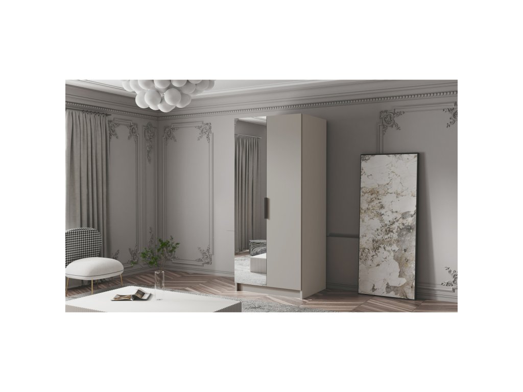 Šatní skříň BODRUM 100 II - béžová/černé úchytky. Šatní skříň kombinuje klasickou jednoduchost a moderní design. Je ideální jako šatní skříň do předsíně nebo místo pro uložení oblečení v ložnici nebo jiných drobností každodenní potřeby. Šatní skříně je rozdělena na dvě stejné části. Na jedné straně jsou police a na druhé straně je závěsná šatní tyč. - použití kvalitních materiálů - zajímavé provedení - snadná montáž - zajímavé úchytky Údržba: Povrch nábytku utřete do čista měkkým hadříkem. Vyhněte se použití chemikálií.Doplňkové parametry