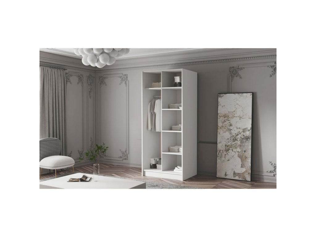Šatní skříň BODRUM 100 II - bílá/zlaté úchytky. Šatní skříň kombinuje klasickou jednoduchost a moderní design. Je ideální jako šatní skříň do předsíně nebo místo pro uložení oblečení v ložnici nebo jiných drobností každodenní potřeby. Šatní skříně je rozdělena na dvě stejné části. Na jedné straně jsou police a na druhé straně je závěsná šatní tyč. - použití kvalitních materiálů - zajímavé provedení - snadná montáž - zajímavé úchytky Údržba: Povrch nábytku utřete do čista měkkým hadříkem. Vyhněte se použití chemikálií.Doplňkové parametry