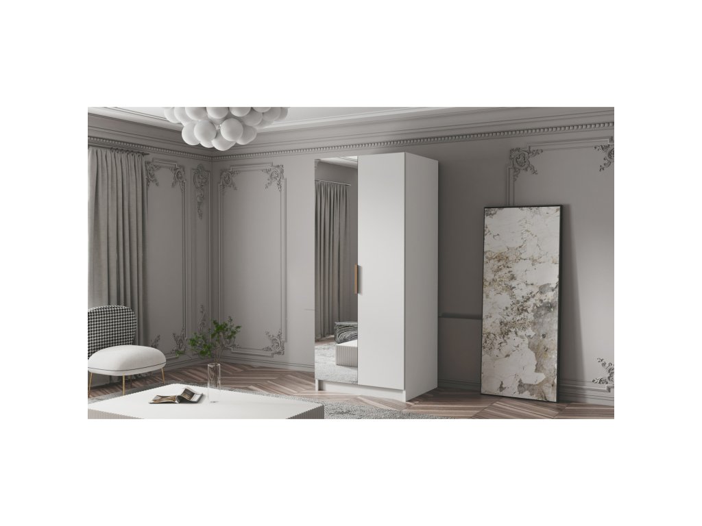 Šatní skříň BODRUM 100 II - bílá/zlaté úchytky