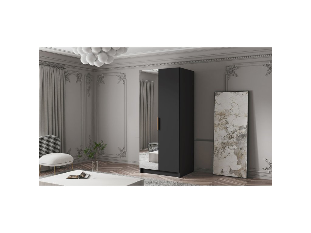 Šatní skříň BODRUM 100 II - černá/zlaté úchytky. Šatní skříň kombinuje klasickou jednoduchost a moderní design. Je ideální jako šatní skříň do předsíně nebo místo pro uložení oblečení v ložnici nebo jiných drobností každodenní potřeby. Šatní skříně je rozdělena na dvě stejné části. Na jedné straně jsou police a na druhé straně je závěsná šatní tyč. - použití kvalitních materiálů - zajímavé provedení - snadná montáž - zajímavé úchytky Údržba: Povrch nábytku utřete do čista měkkým hadříkem. Vyhněte se použití chemikálií.Doplňkové parametry