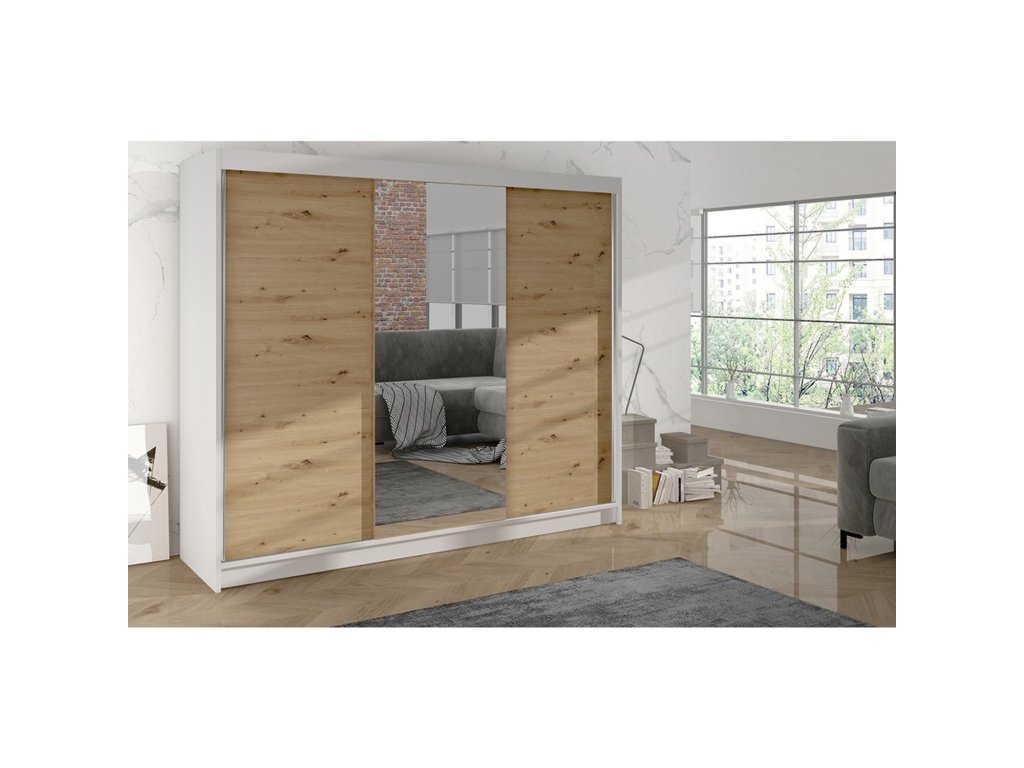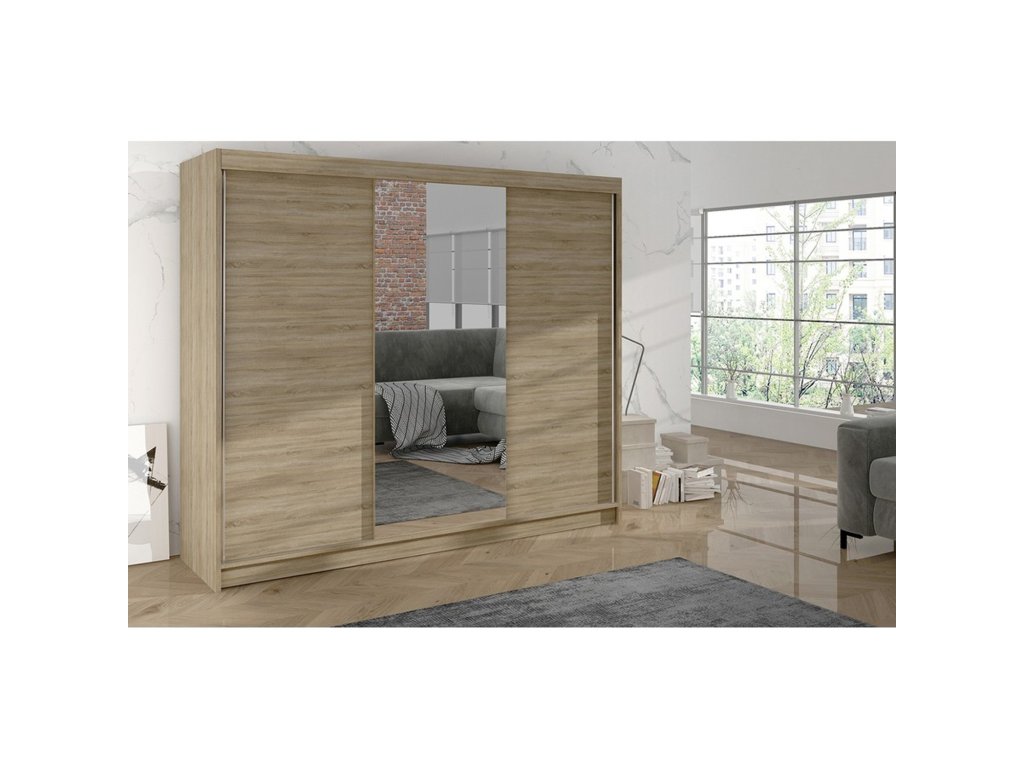 Šatní skříň Derby I je vyrobena v moderním designu a nabízí velké množství praktického úložného prostoru. Neocenitelný je systém trendových posuvných dveří se zrcadlem, které usnadňují manipulaci a šetří prostor v interiéru. - použití kvalitních materiálů - madlo v podobě hliníkové lišty podél dveří - zrcadlo na přední straně dveří - zajímavé provedení - snadná montáž Údržba: Povrch nábytku utřete do čista měkkým hadříkem. Vyhněte se použití chemikálií.Doplňkové parametry