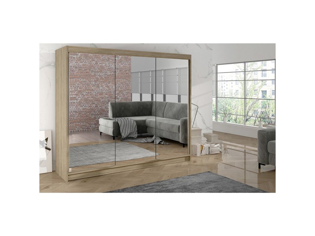 Šatní skříň Derby III je vyrobena v moderním designu a nabízí velké množství praktického úložného prostoru. Neocenitelný je systém trendových posuvných dveří se zrcadlem, které usnadňují manipulaci a šetří prostor v interiéru. - použití kvalitních materiálů - madlo v podobě hliníkové lišty podél dveří - zrcadlo na přední straně dveří - zajímavé provedení - snadná montáž Údržba: Povrch nábytku utřete do čista měkkým hadříkem. Vyhněte se použití chemikálií.Doplňkové parametry