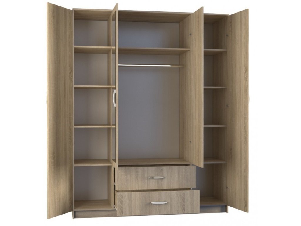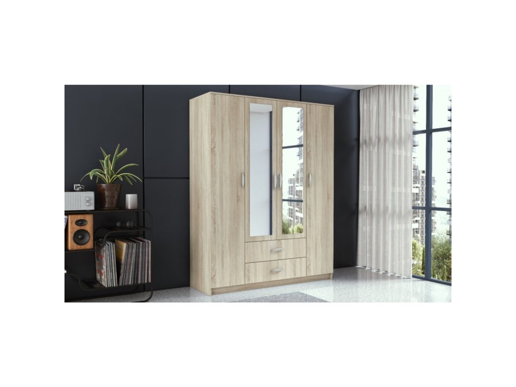 Šatní skříň Romana se zrcadlem je vyrobena v moderním designu a nabízí velké množství praktického úložného prostoru. - použití kvalitních materiálů - zajímavé provedení - snadná montáž Údržba: Povrch nábytku utřete do čista měkkým hadříkem. Vyhněte se použití chemikálií.Doplňkové parametry