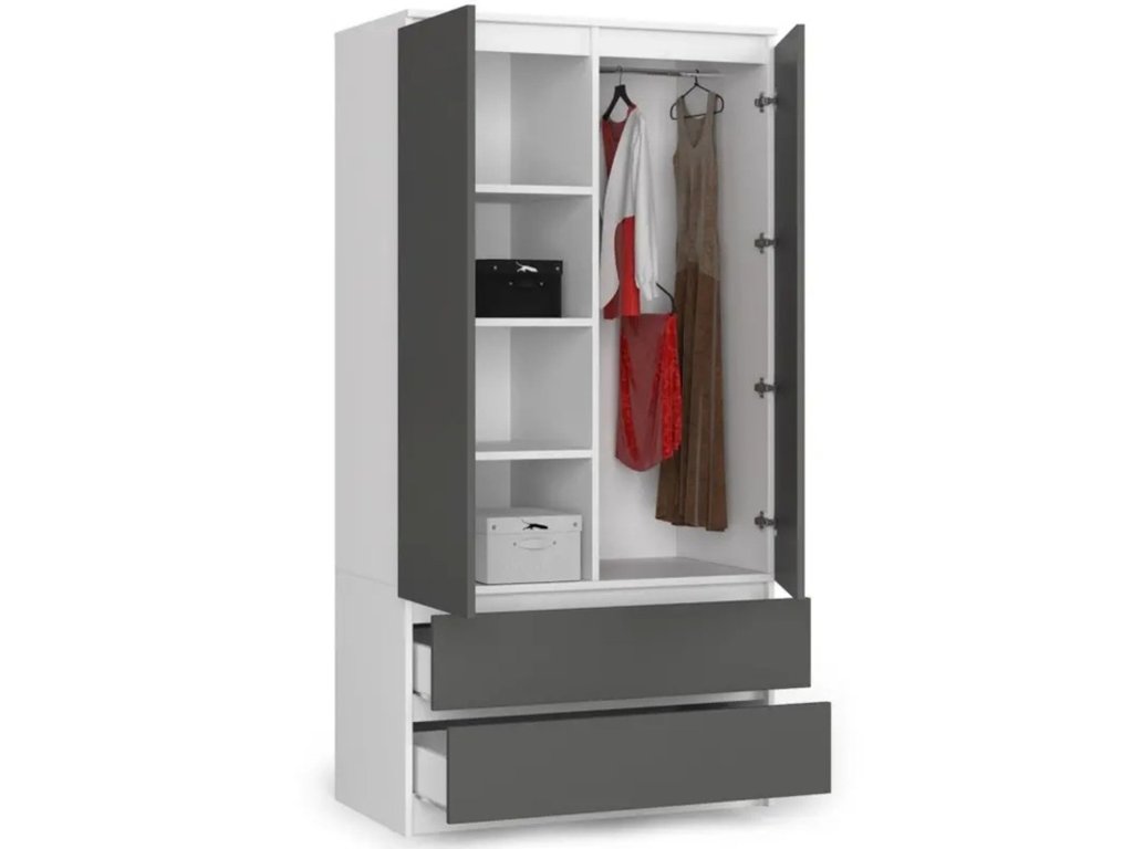 Šatní skříň S90 2D2SZ CLP - bílá/grafit