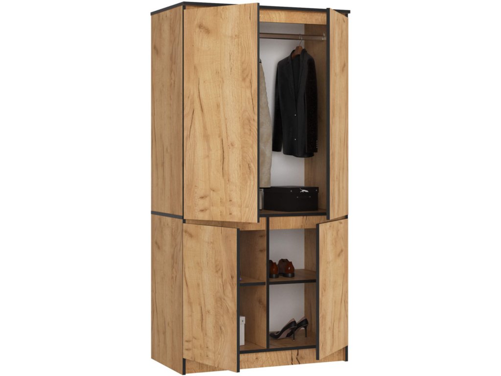 Šatní skříň S90 4D CLP - řemeslný dub. Jednoduchá a kvalitní skříň, která Vás okouzlí svou jednoduchostí a elegancí. Bezúchytková čela zajišťují pohodlné používání. - použití kvalitních materiálů - 2 prostorné police - 1x šatní tyč - zajímavé provedení - snadná montáž Údržba: Povrch nábytku utřete do čista měkkým hadříkem. Vyhněte se použití chemikálií.Doplňkové parametry