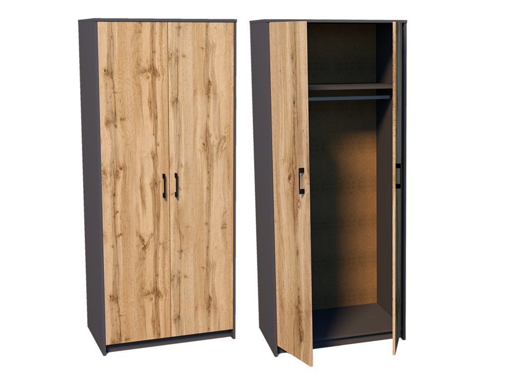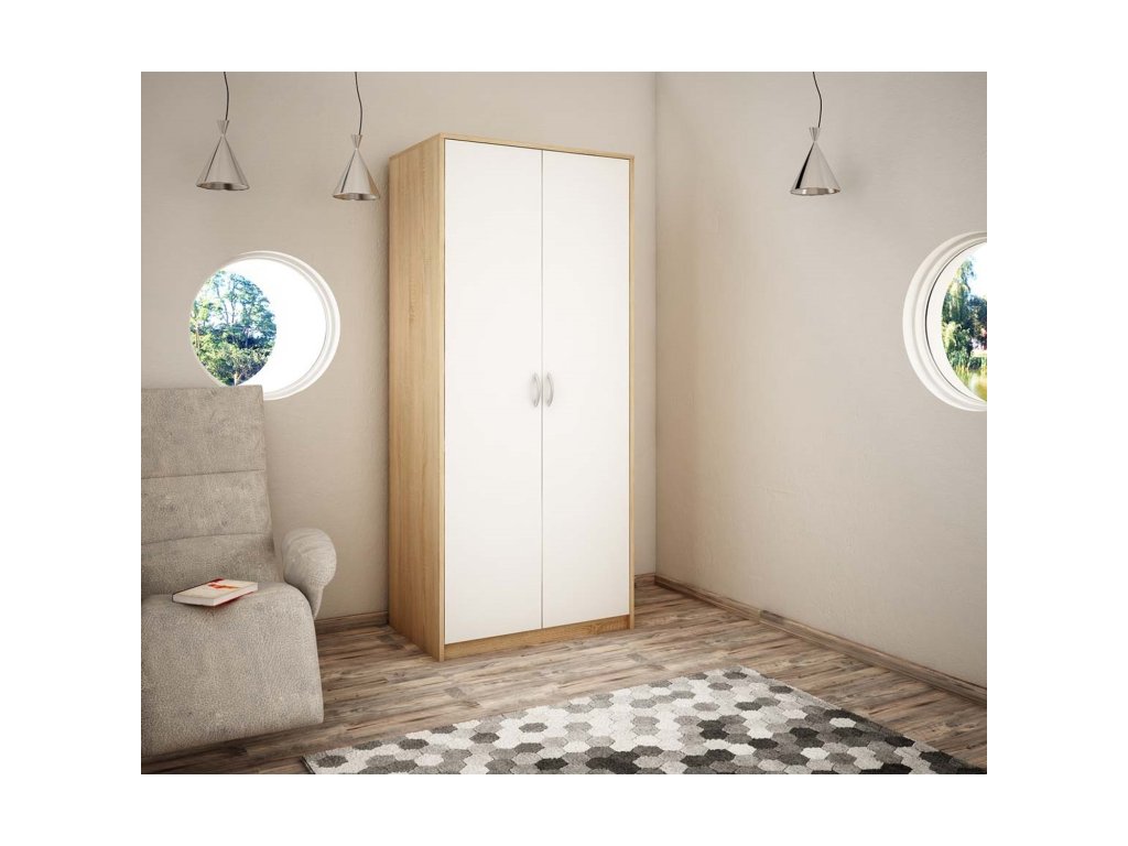 Skříň Wiktoria 2D SZ04. Jednoduchá a moderní skříň. Je vyrobená z pevné laminované desky, která je odolná proti oděru a poškození. Univerzální vzhled splní očekávání každého, kdo ocení kombinaci jednoduchosti a elegance. - použití kvalitních materiálů - zajímavé provedení - snadná montáž Údržba: Povrch nábytku utřete do čista měkkým hadříkem. Vyhněte se použití chemikálií.Doplňkové parametry