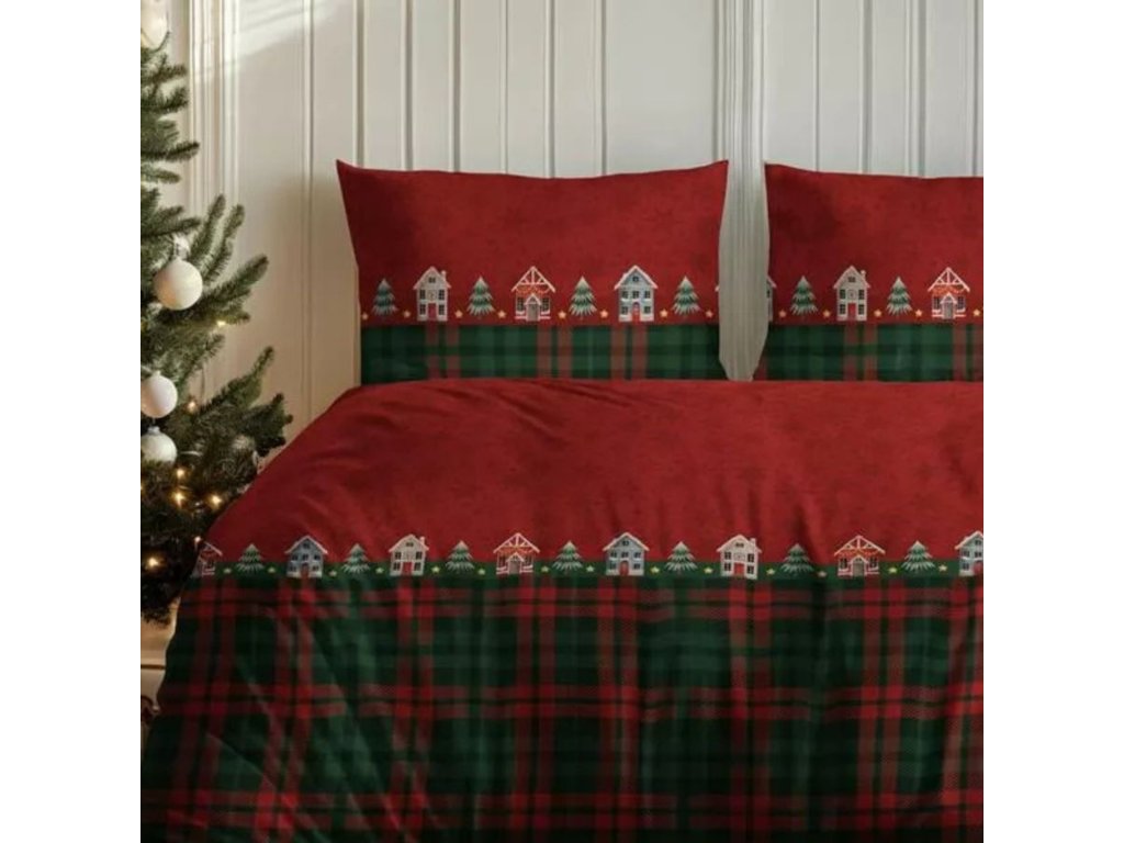 Vánoční flanelové povlečení 5619 B KOUZLO VÁNOC domečky 140x200 cm