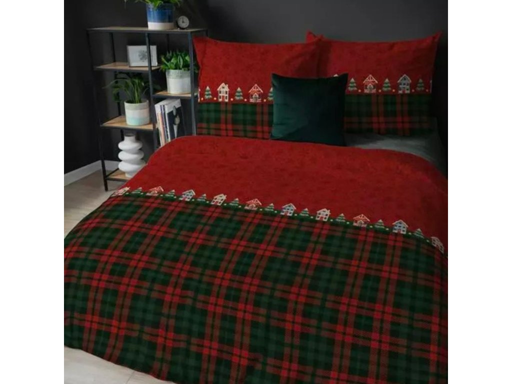 Vánoční flanelové povlečení 5619 B KOUZLO VÁNOC domečky 140x200 cm. Teplo a kouzlo svátků pocítíte s unikátním flanelovým povlečením z kolekce Kouzlo Vánoc . Okouzlující vzor domečků na vínově zeleném pozadí vnese do vaší ložnice útulnou vánoční atmosféru. Jemný a hebký flanel činí z této sady ideální sadu pro chladné zimní noci. Přírodní tkanina vás zahalí do jemné hebkosti a zajistí pohodlný spánek a relaxaci. Před prvním použitím vyprat. Rozměry: - povlak na peřinu 140x200 cm - povlak na polštář 70x80 cm Pokyny pro údržbu: - prát na 40 °C - nečistit chemicky - nebělit - nežehlit - sušit pověšenímDoplňkové parametry