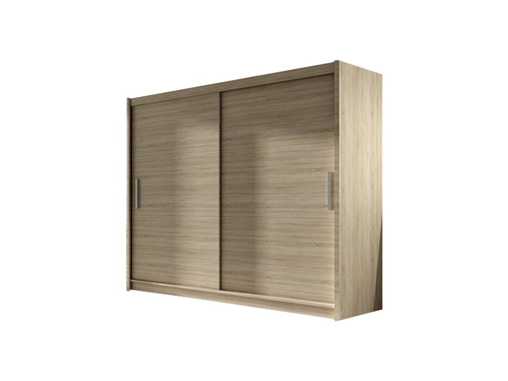 Velká šatní skříň BEGA I dub sonoma šířka 180 cm. Dvoudveřová šatní skříň se systémem posuvných dveří, který usnadňuje každodenní používání. Moderní, funkční a elegantní. Určeno pro bezpečné uložení oděvů a jiných osobních věcí. Ideální do ložnice, obývacího pokoje nebo haly. Díky klasickému designu bude šatní skříň dokonalým doplňkem tradičních i moderních interiérů domů. Systém posuvných dveří zajistí komfort a pohodlí každodenního používání. Pevně namontovaná vodící lišty umožňují snadné a hladké otevírání skříně. - použití kvalitních materiálů - zajímavé provedení - snadná montáž Údržba: Povrch nábytku utřete do čista měkkým hadříkem. Vyhněte se použití chemikálií.Doplňkové parametry