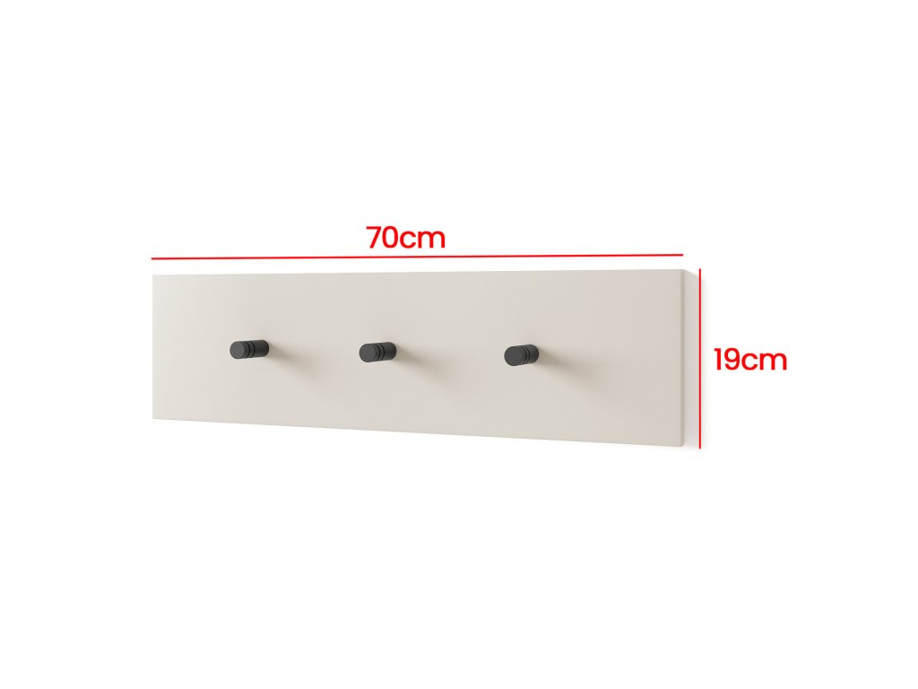 Věšák BIANCO. Kolekce Bianco je unikátní systém, který vám umožňuje plně si přizpůsobit nábytek podle vašich preferencí. Věšák z lamina. Součástí jsou 3 kovové háčky. - použití kvalitních materiálů - zajímavé provedení - snadná montáž Údržba: Povrch nábytku utřete do čista měkkým hadříkem. Vyhněte se použití chemikálií.Doplňkové parametry
