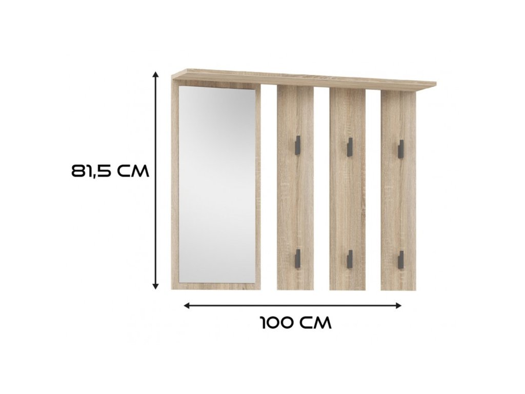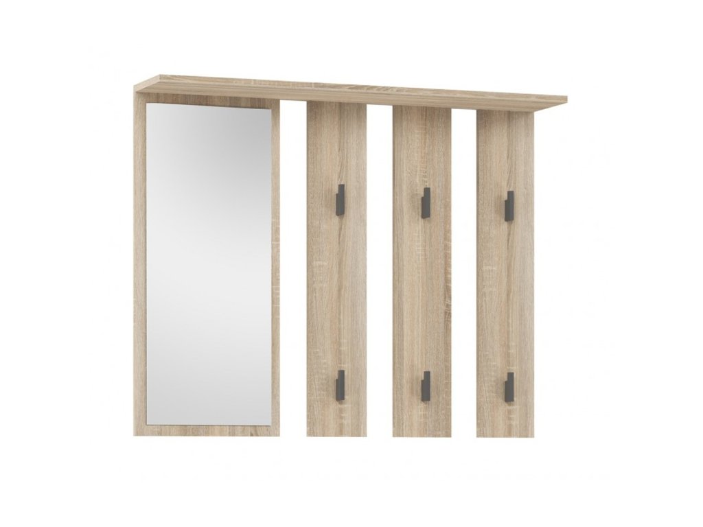 Věšák na zeď PARMA - dub sonoma. Praktický věšák a zrcadlo do vaší předsíně. Je elegantním a praktickým prvkem pro každou předsíň. Díky svému modernímu vzhledu se stane designovým prvek pro váš interiér. Údržba: Povrch nábytku utírejte vlhčeným hadříkem. Vyhněte se použití chemikálií.Doplňkové parametry