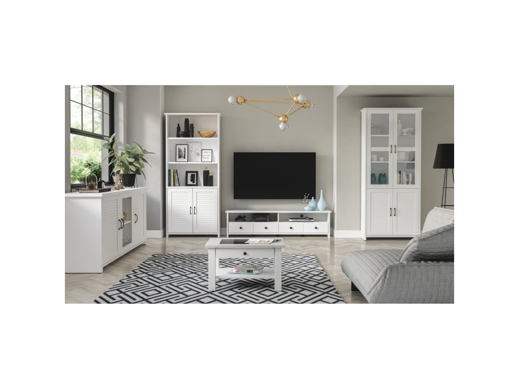 Vitrína ORIENT W2DS je vyrobena z lamina v bílé barvě. Lamelová žebrovaná dvířka připomínají rolety, které podtrhují netradiční design, který je inspirovaný exotikou. Díky pevné konstrukci a nadčasové bíle se budete cítit příjemně a útulně. Nábytek z kolekce Orient se hodí do obývacích pokojů a předsíní. Kovové úchytky doplňují celkový vzhled kolekce. Vitrína je policová, s částečně uzavřenými plnými dvířky. Údržba: Povrch nábytku otírejte vlhčeným hadříkem. Vyhněte se použití chemikálií.Doplňkové parametry