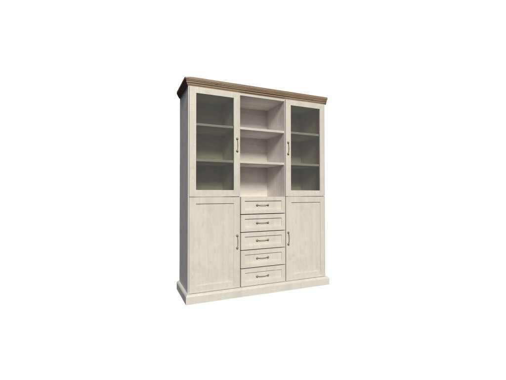 Kvalitní a moderní vitrína ROYAL W2D. Jedinečný design je sklouben s vysokou funkčností, takže se nemusíte bát, že váš nový nábytek bude pouze na ozdobu. Každá skříňka nabízí dostatek úložného prostoru, kam umístíte všechny potřebné věci. Originální kovové úchytky dokreslují venkovský charakter nábytku. Údržba: Povrch nábytku otírejte vlhčeným hadříkem. Vyhněte se použití chemikálií.Doplňkové parametry